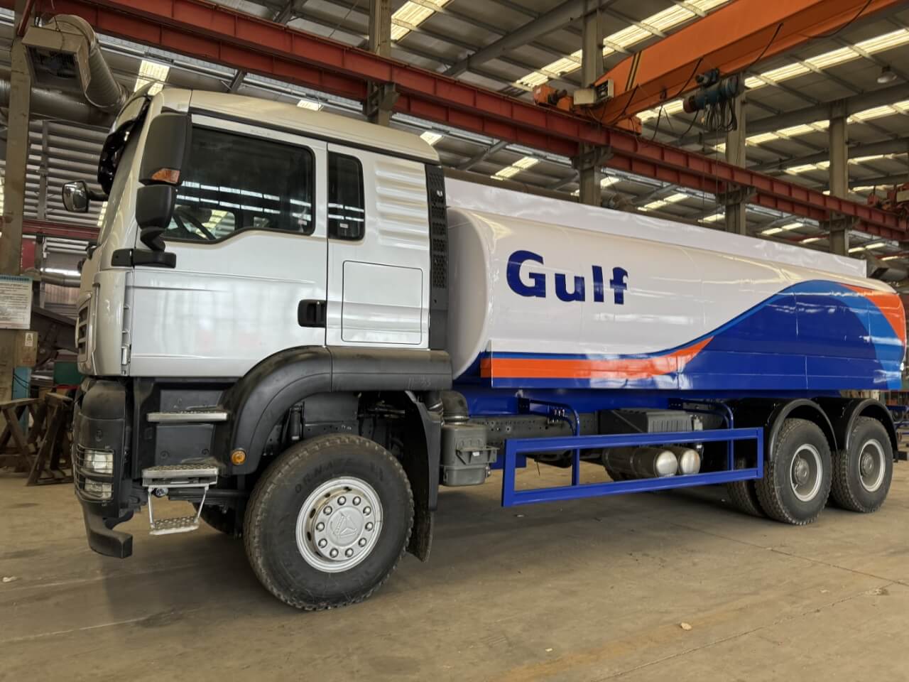 Klanten uit Kirgizië kwamen voor het eerst binnenolietankwagenproductieworkshop van Luyi Factory. In de werkplaats onderging de tankvormlijn van olietankwagens geautomatiseerde laswerkzaamheden. Technici van de Luyi-fabriek lieten klanten in Kirgizië weten dat olietankwagens gebruik maken van het speciale Q345R-drukvatstaal, met een tankdikte van 8 millimeter. Na een waterdruktest bij 1,2 keer de werkdruk was er geen sprake van lekkage, wat volledig voldoet aan de veiligheidsnormen voor voertuigen voor het vervoer van gevaarlijke goederen in Kirgizië. Klanten uit Kirgizië bogen zich om de laskwaliteit van te controlerenolietankwagens, mat de tankdikte met remklauwen en sprak zijn erkenning uit voor de productieprecisie van Luyi Factory.