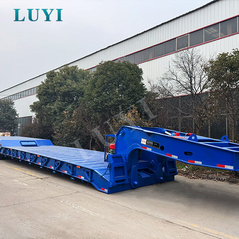 De LUYI 4-assige zwanenhals dieplader, afkomstig uit Shandong, China, is een hoogwaardige oplegger speciaal ontworpen voor zwaar vrachtvervoer. Hij is gebouwd met hoogwaardig staal, heeft een leeggewicht van slechts 6.350 kg, een nominaal draagvermogen van 50.000 kg en een maximaal laadvermogen variërend van 30 ton tot 200 ton, wat uitzonderlijke draagprestaties levert.