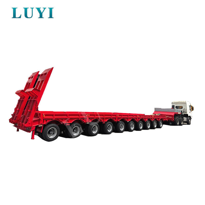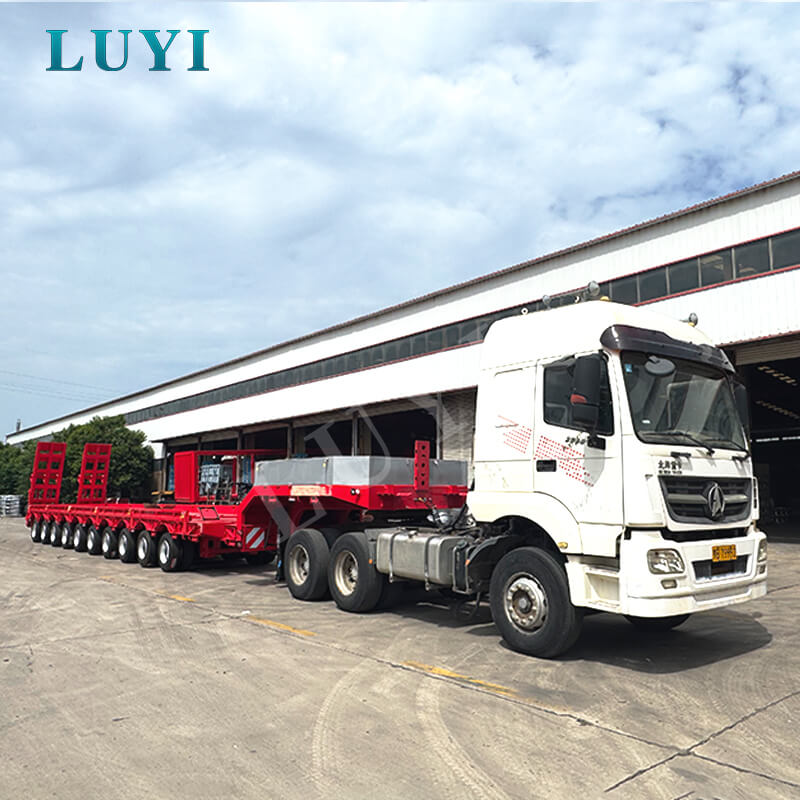De 10-assige 80-100 ton dieplader van LUYI, afkomstig uit Shandong, China, is een uitstekende keuze voor zwaar vrachtvervoer. Het is gebouwd met hoogwaardig staal en biedt twee maatopties: 1780030001500 mm en 1800030001500 mm, met een maximaal draagvermogen van 100 ton en een normale nominale belasting van 80 ton, met een buitengewoon draagvermogen.
