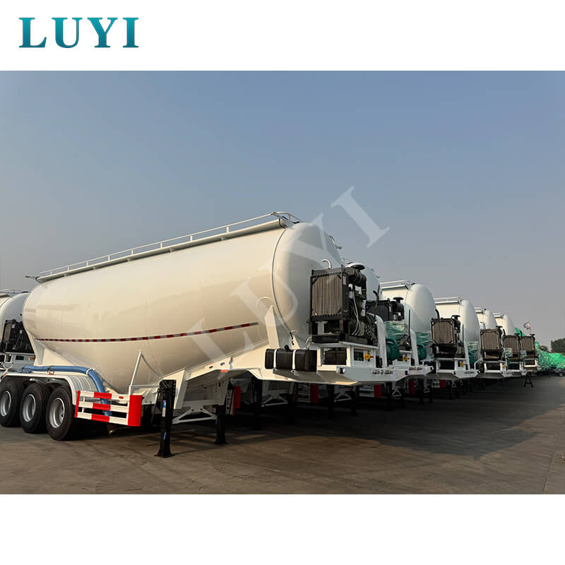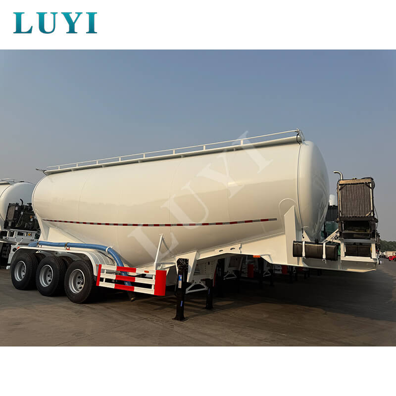 De gloednieuwe LUYI 3-assige 30-tons poedertankoplegger, afkomstig uit de provincie Shandong, China, is een stalen uitrusting die speciaal is ontworpen voor het transport van bulkcementpoeder. Het is geschikt voor het slepen van vrachtwagens en voldoet precies aan de logistieke behoeften van bulkpoedermaterialen. Met afmetingen van 10.500 x 2.550 x 4.000 mm bedraagt het maximale effectieve laadvermogen meer dan 30.000 kg, wat een sterke opslag- en transportcapaciteit oplevert en zich aanpast aan verschillende transportscenario's.