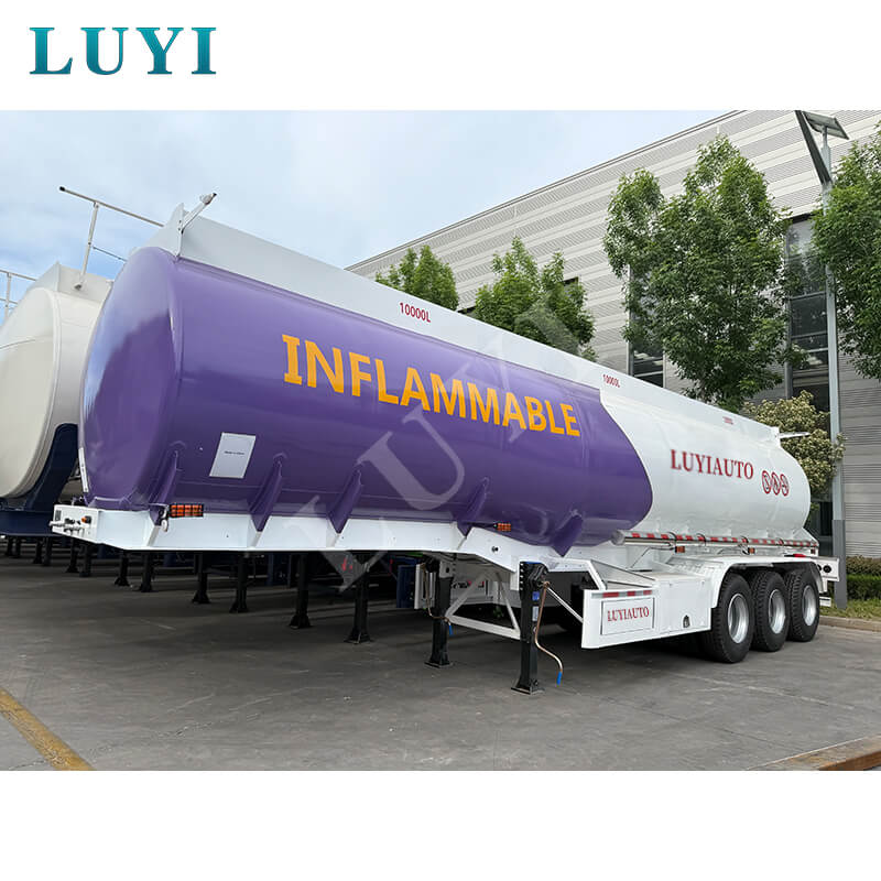 LUYI 3-assige 30.000L brandstoftanker-oplegger, afkomstig uit Shandong, China, is een betrouwbare keuze voor brandstoftransport. Met een maximaal laadvermogen van meer dan 30.000 kg is hij speciaal ontworpen voor efficiënt brandstoftransport als vrachtwagenaanhangwagen.