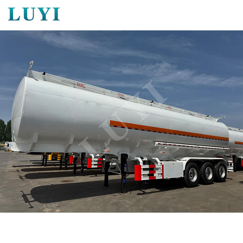 LUYI 3-assige koolstofstalen 55.000 liter olietankoplegger, afkomstig uit Shandong, China, is een hoogwaardige oplossing voor olietransport. Met afmetingen van 10800×2550×3700MM en een maximaal laadvermogen van meer dan 30.000 kg, voldoet hij efficiënt aan de behoeften van zwaar transport.