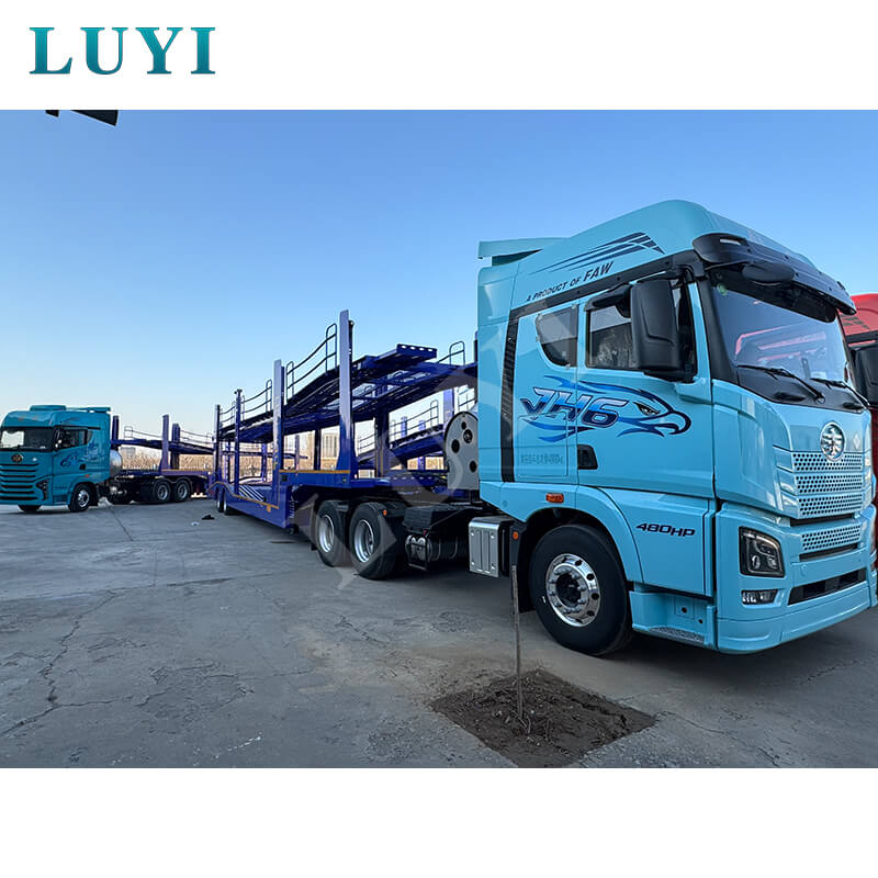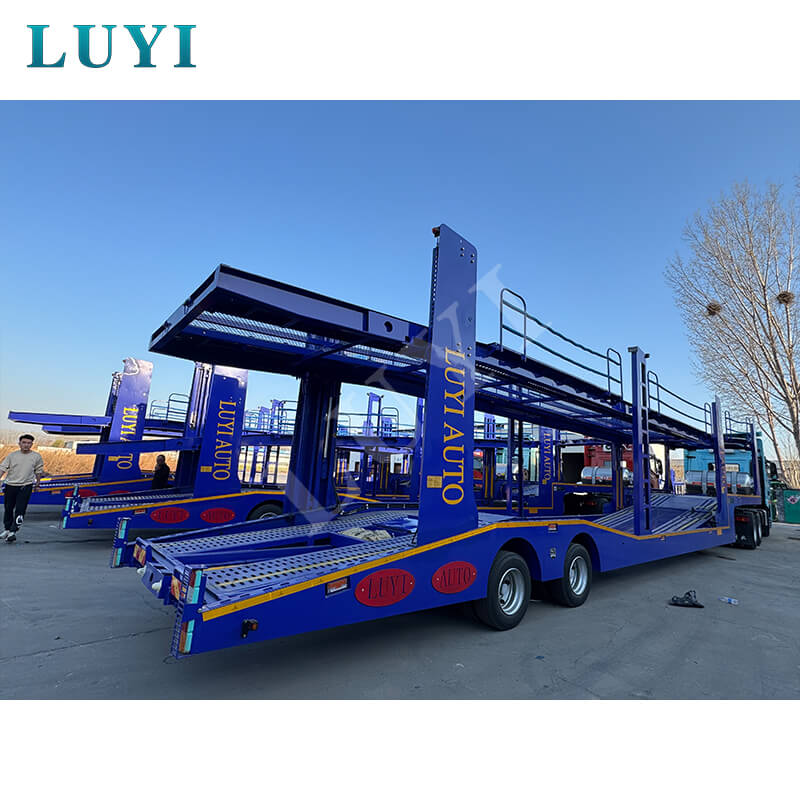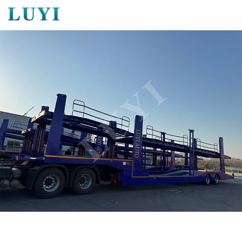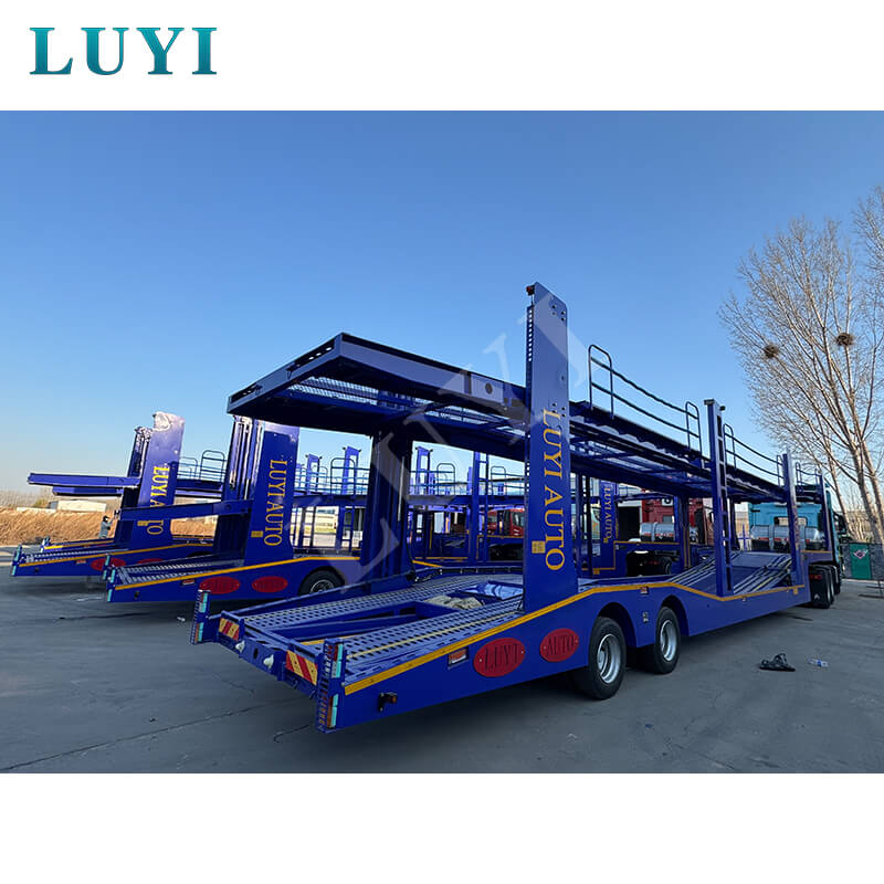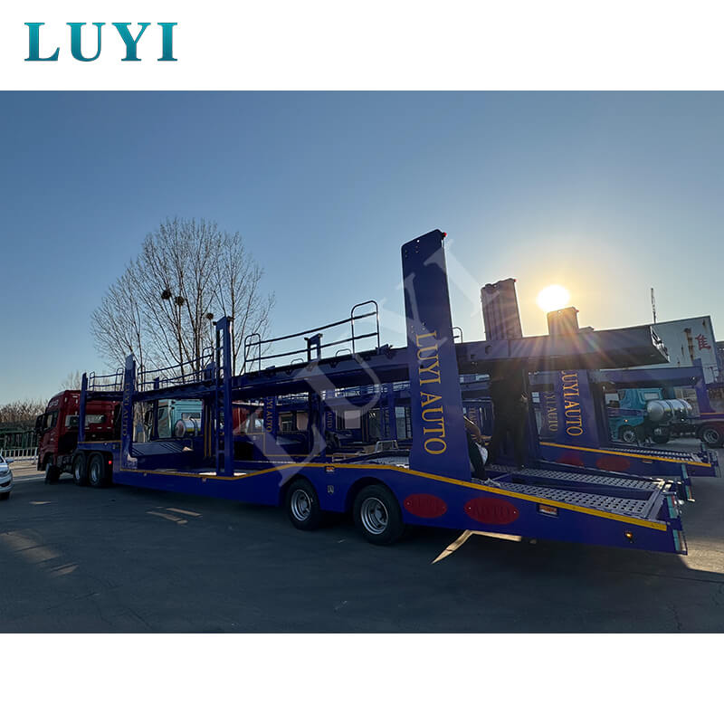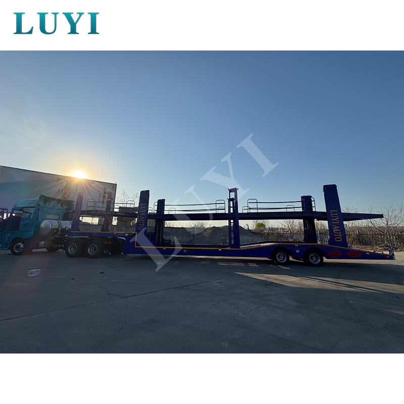 De LUYI 17 meter lange dubbelassige voertuigtransportoplegger, die 8 voertuigen kan vervoeren, is afkomstig uit de provincie Shandong, China. Het is een oplegger die speciaal is ontworpen voor het vervoeren van meerdere auto's, geschikt is voor vrachtwagentrailerscenario's en een efficiënte oplossing biedt voor de autologistiek.